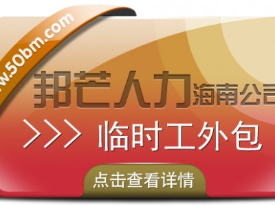 海南临时工外包公司就到邦芒人力,积累了丰富的经验,服务企业30000+家,专业外包团队2000人,队伍专业,实力雄厚,覆盖全国400座城市,拥有丰富的经验和良好的市场声誉,一地签约全国服务,聚焦业务核心,为企业提供临时工外包/小时工外包服务,批量外包员工可以快速到岗。若您希望获得进一步的了解,欢迎您随时联络我们,诚邀为您提供最满意的服务!想了解更多人力资源服务,请关注海南邦芒人力了解更多。
